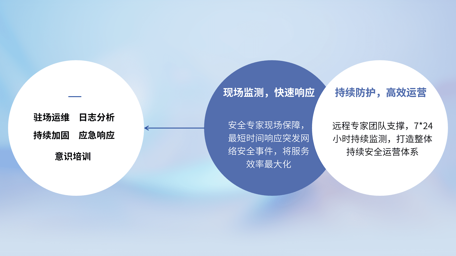 7X24小时持续监测安全事件,保持安全策略有效性,降低资产脆弱性风险,,精准拦截黑客攻击,,减少被黑客利用的机会,,第一时间遏制,,,降低损失。。